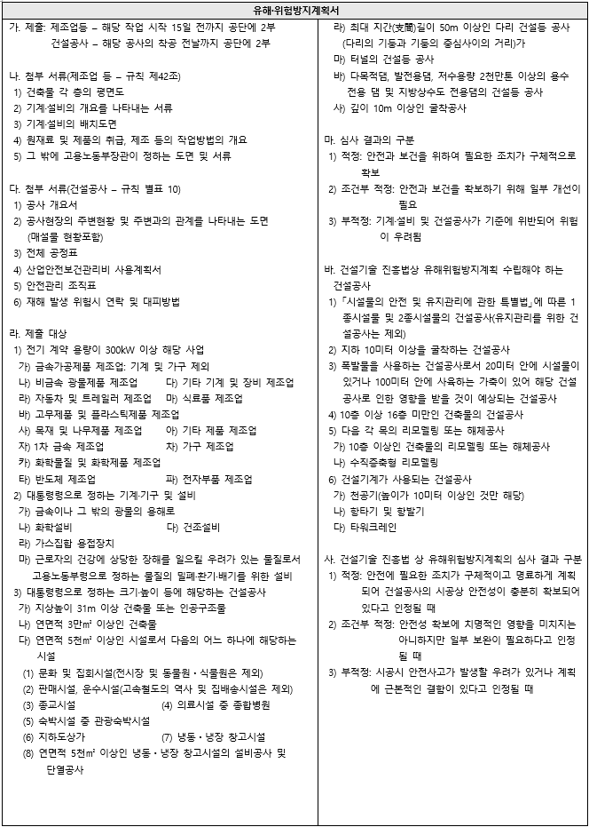 -산업안전보건법 제42조(유해위험방지계획서의 작성 제출 등)